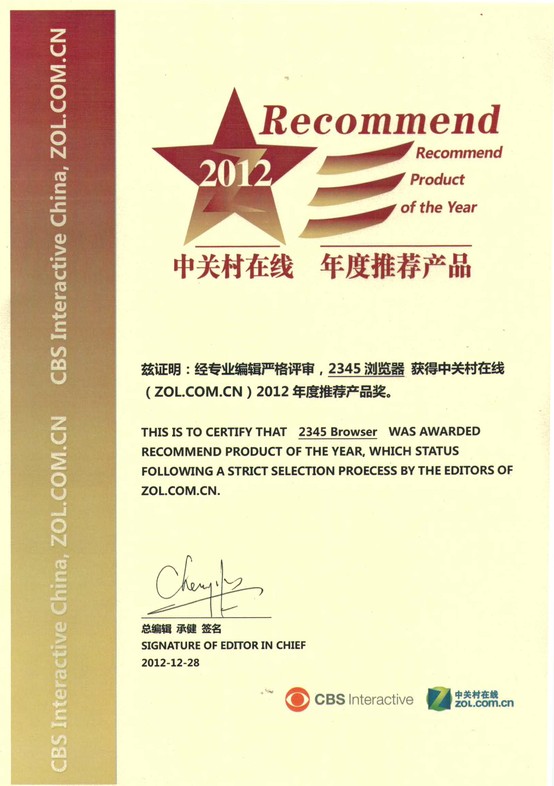 此次中關(guān)村在線從硬件與軟件兩個(gè)大類對(duì)2012年的科技產(chǎn)品進(jìn)行盤點(diǎn),其中軟件類產(chǎn)品從電腦、手機(jī)、平板三個(gè)終端維度進(jìn)行評(píng)選。2345瀏覽器從3.2萬(wàn)余款新增產(chǎn)品中脫穎而出,在歷經(jīng)評(píng)審的7層嚴(yán)苛篩選后最終奪得了年度推薦產(chǎn)品獎(jiǎng)。