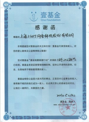 為了感謝大家的善舉,壹基金特發(fā)來感謝函!