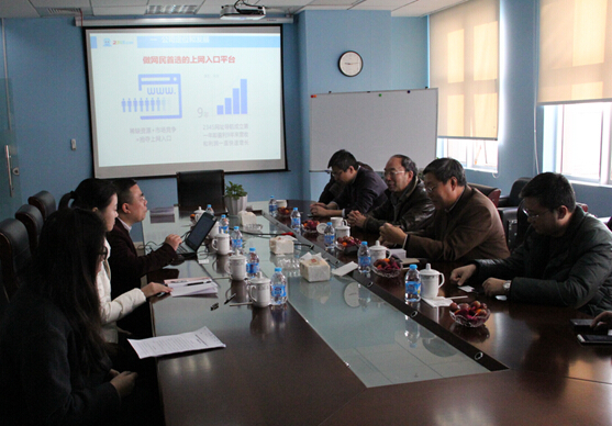 韓猛就公司產(chǎn)品、盈利模式、合作伙伴及未來三年規(guī)劃等做了詳細(xì)介紹,并與客人探討了我公司pc端和移動(dòng)端產(chǎn)品的發(fā)展方向。