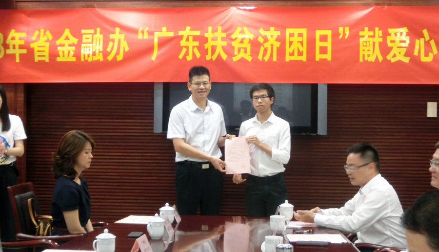7月2日,廣東省金融辦舉辦“扶貧濟困日”獻愛心現(xiàn)場募捐活動,廣州小額貸款公司協(xié)會會員單位廣州二三四五互聯(lián)網(wǎng)小額貸款有限公司、廣州市衡譽小額貸款股份有限公司、廣東省粵科科技小額貸款股份有限公司、佛山禪城中盈盛達小額貸款有限公司等小貸金融公司與廣東省銀行、保險、證券等主要金融行業(yè)的企業(yè)代表參加本次活動。其中,二三四五集團旗下廣州二三四五互聯(lián)網(wǎng)小額貸款有限公司在本次活動中捐款人民幣8萬元,為本次活動捐款金額最高的會員單位。