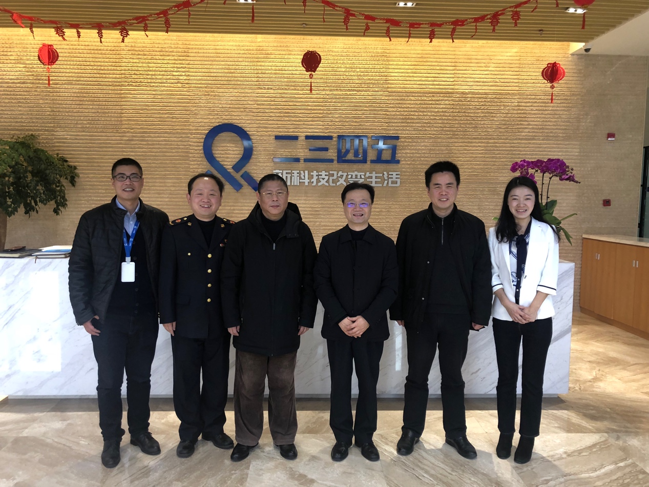 2月11日上午,浦東市場監(jiān)管局副局長、綜合執(zhí)法稽查支隊支隊長蘇國平,浦東市場監(jiān)管局市場處(網(wǎng)監(jiān)處)處長于順良一行蒞臨二三四五總部視察工作。二三四五集團副總裁羅繪陪同領(lǐng)導(dǎo)參觀公司并開展座談會。