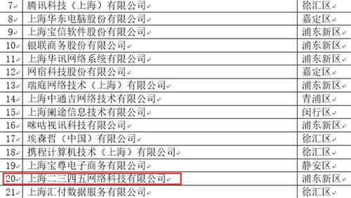 11月20日,由上海市經(jīng)濟(jì)和信息化委員會(huì)評(píng)選頒布的“2019上海軟件和信息技術(shù)服務(wù)業(yè)百?gòu)?qiáng)”和“2019上海軟件和信息技術(shù)服務(wù)業(yè)高成長(zhǎng)百家”企業(yè)名單公布,二三四五旗下子公司上海二三四五網(wǎng)絡(luò)科技有限公司榮居“2019上海軟件和信息技術(shù)服務(wù)業(yè)百?gòu)?qiáng)”第20名、上海洪昇智能科技有限公司榮居“2019上海軟件和信息技術(shù)服務(wù)業(yè)高成長(zhǎng)百家”第21名。