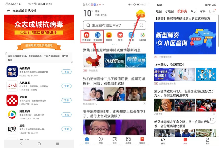 作為國(guó)內(nèi)社交巨頭之一,字節(jié)跳動(dòng)在今日頭條上線“抗擊肺炎”頻道,抖音則上線“抗擊肺炎疫情”專題頁(yè)面,用戶搜索“肺炎”等關(guān)鍵詞即可進(jìn)入。