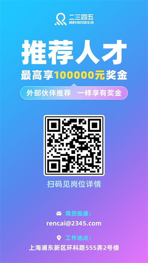 作為大平臺(tái),2345不但是用戶值得信賴的選擇,更是各位人才工作的好選擇!