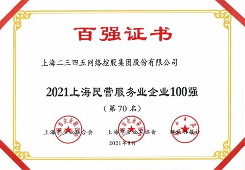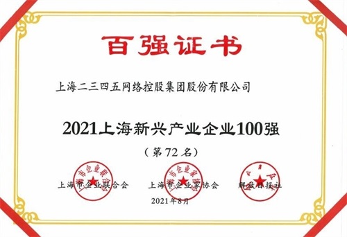 8月26日,由上海市企業(yè)聯(lián)合會、上海市企業(yè)家協(xié)會、上海市經(jīng)濟(jì)團(tuán)體聯(lián)合會和解放日報社聯(lián)合主辦的上海百強(qiáng)企業(yè)評選結(jié)果發(fā)布。上海二三四五網(wǎng)絡(luò)控股集團(tuán)股份有限公司(以下簡稱“二三四五”,002195.SZ)榮獲上海民營服務(wù)業(yè)企業(yè)100強(qiáng)、上海新興產(chǎn)業(yè)企業(yè)100強(qiáng)。